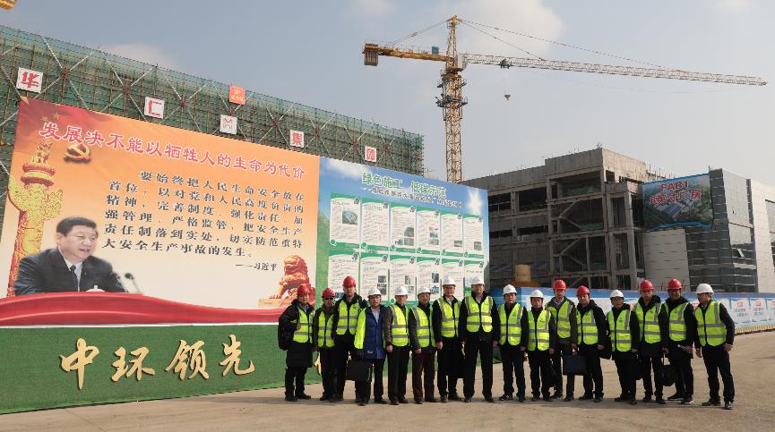 1月16日上午,南大環保總經理呂振華帶領企業中高層領導及技術骨干一行20余人,前往宜興中環領先集成電路用8-12英寸半導體硅片項目現場參觀交流。