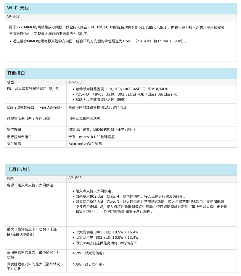 室內中密度Wi-Fi 6接入點AP-503提供兼具高成本效益與高性能的連接,可以幫助各類組織應對因移動使用需求提高、轉向云或物聯網環境而帶來的設備增長挑戰。503 系列的實際聚合數據速率高達 1.775 Gbps(HE80/HE40),可以為學校、中型辦公室和零售賣場等中等密度的場地和工作場所提供所需的連接速度和可靠性。